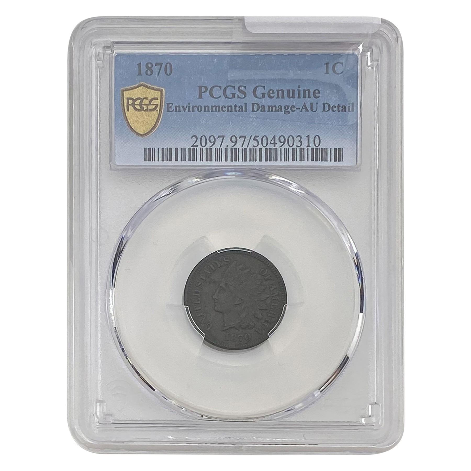 1870 Indian Head Cent PCGS AU Detail Env. Damage