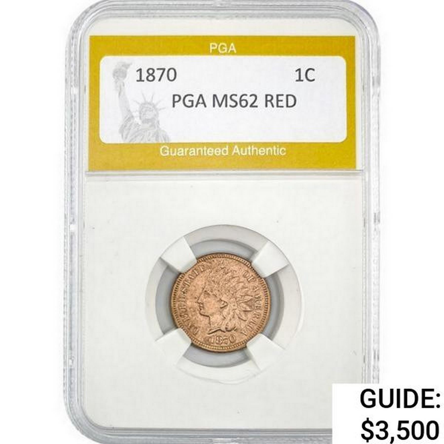 1870 Indian Head Cent PGA MS62 Red