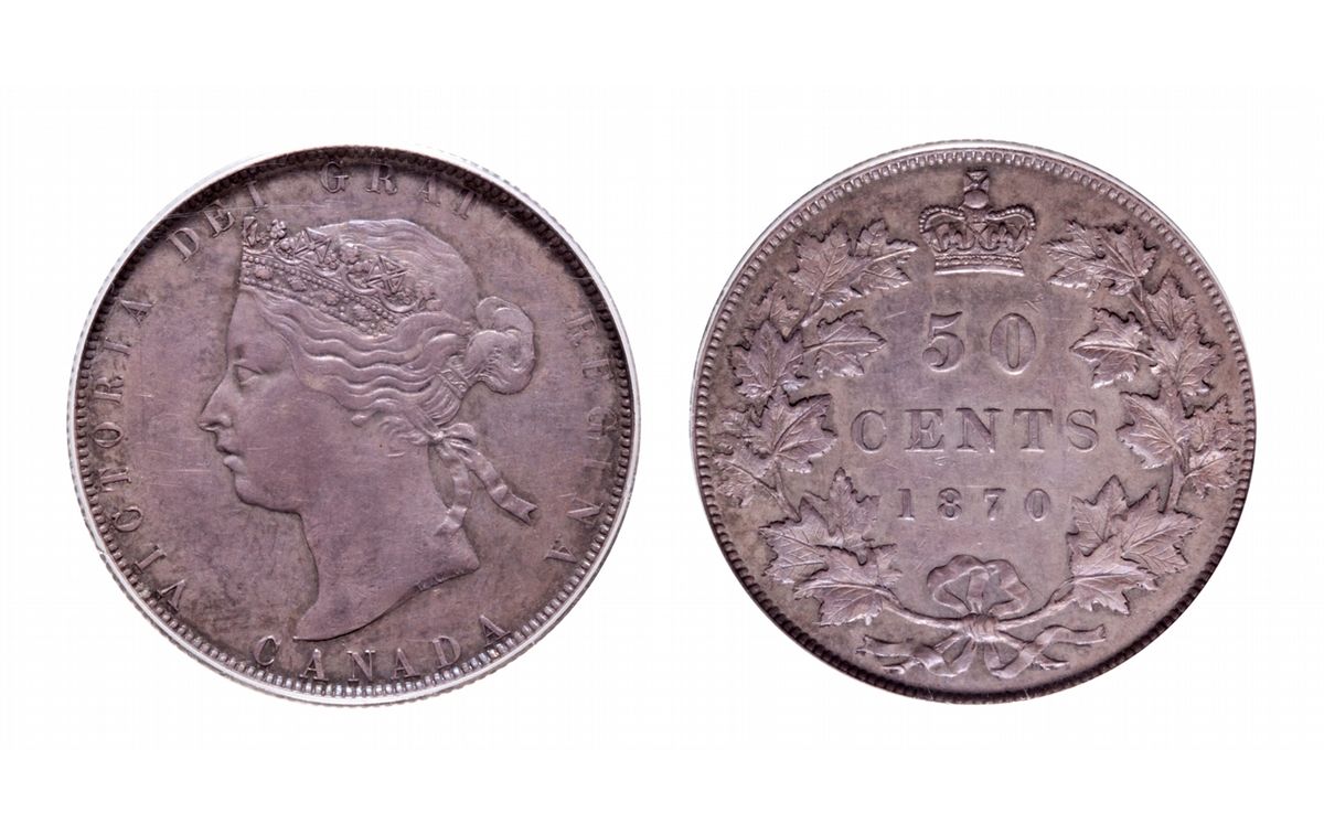 1870. L.C.W. PCGS graded AU-50. Even, medium heavy blue-gray toning.