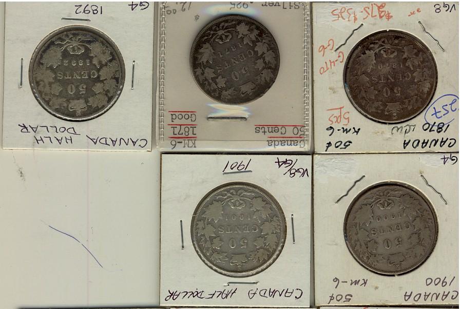 1870 LCW, 1871, 1892, 1900, 1901 50¢, G4 to G6, 5 pieces.