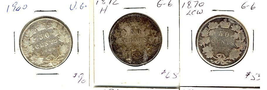 1870 LCW, 1872H & 1900 50¢. Lot of 3 coins G4.