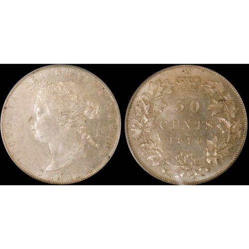 1870 "LCW" 50¢ PCGS MS64 Mirror fields. A premium quality example. An extraordinary "Victorian" example in near Gem condition. The coin is fully struck and has full lustre. It has reflective surfaces on both the obverse and reverse and superb eye appeal.