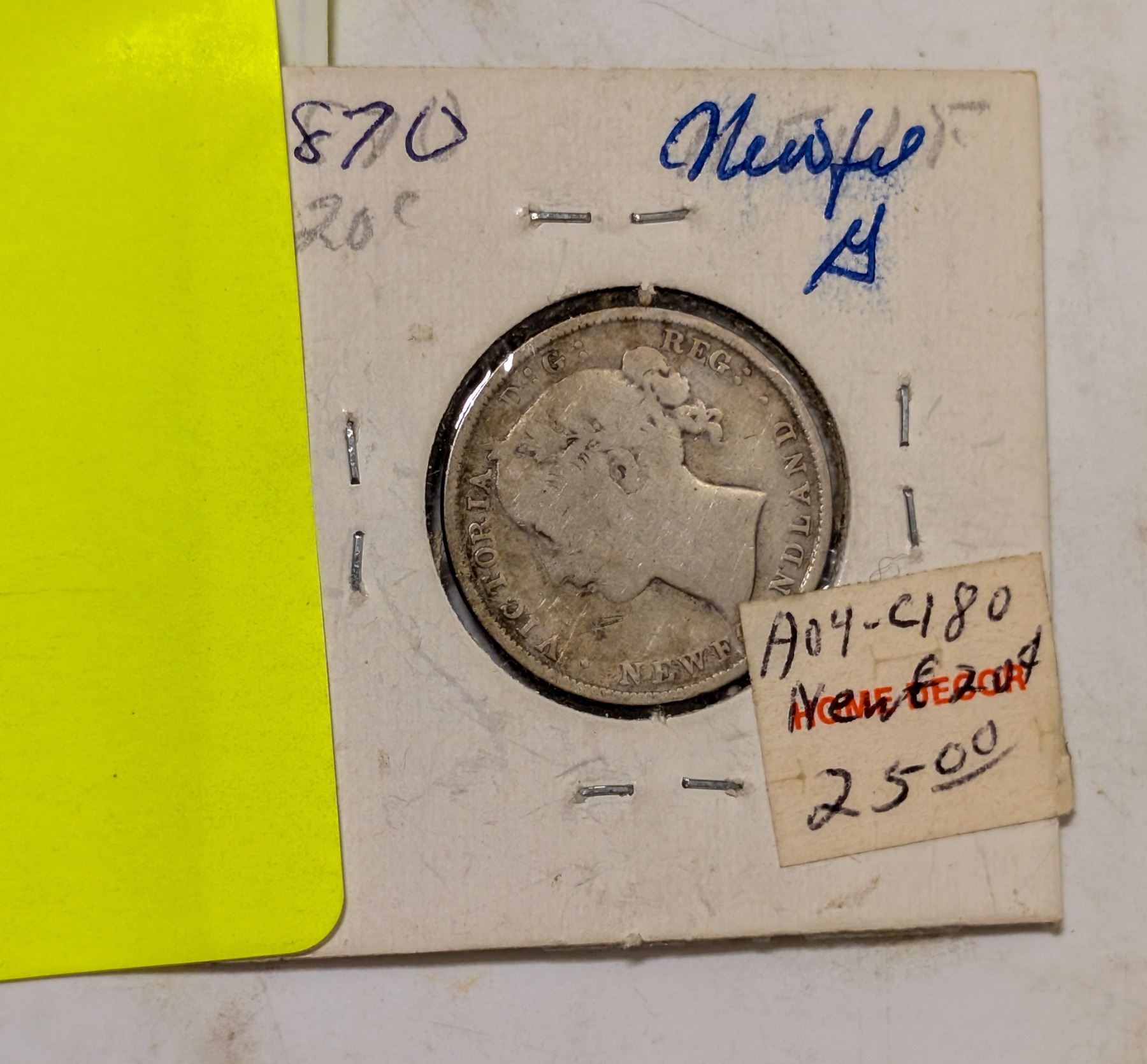1870 NEWFOUNDLAND 20 CENT SILVER COIN