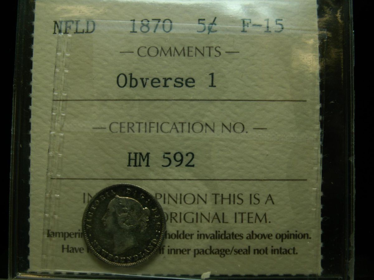 1870 NFLD 5¢ Obv 1 ICCS F15