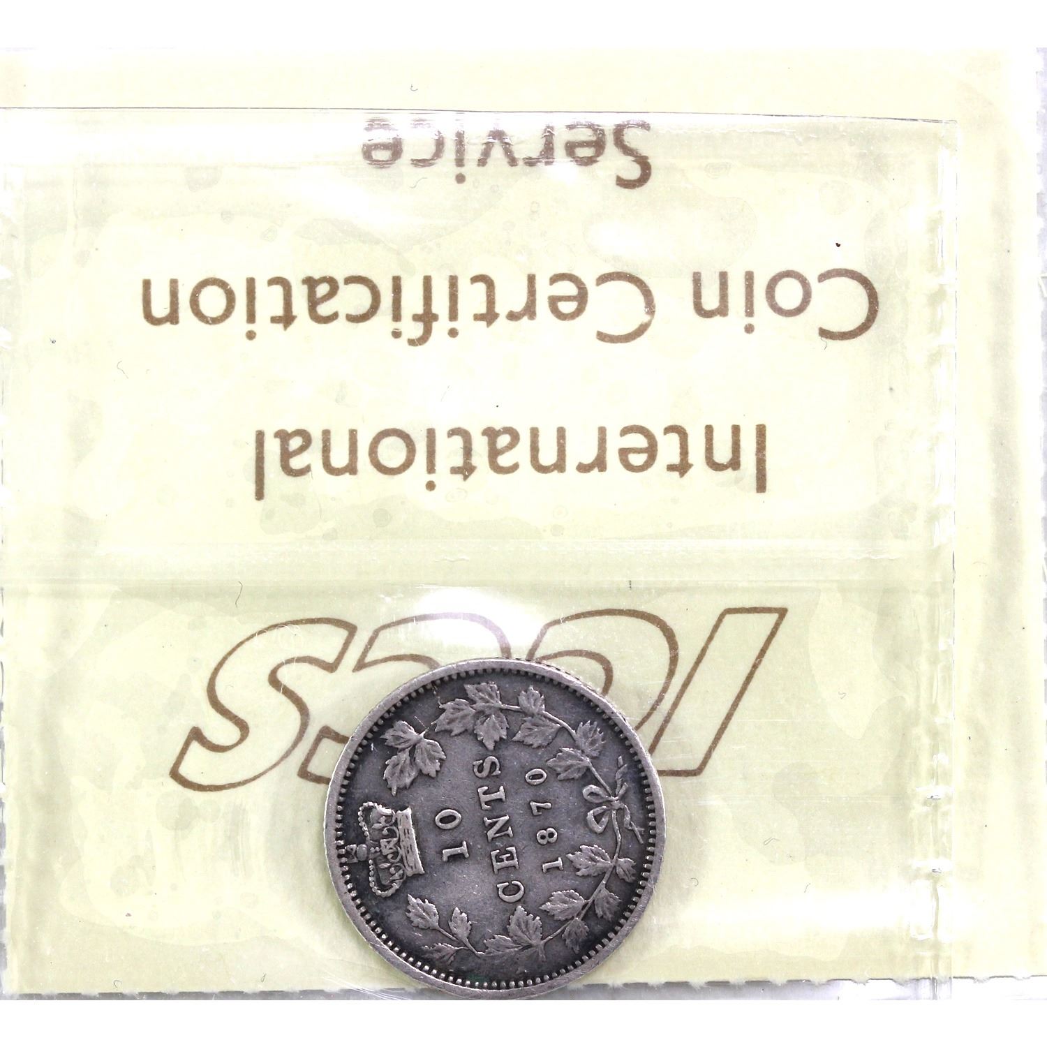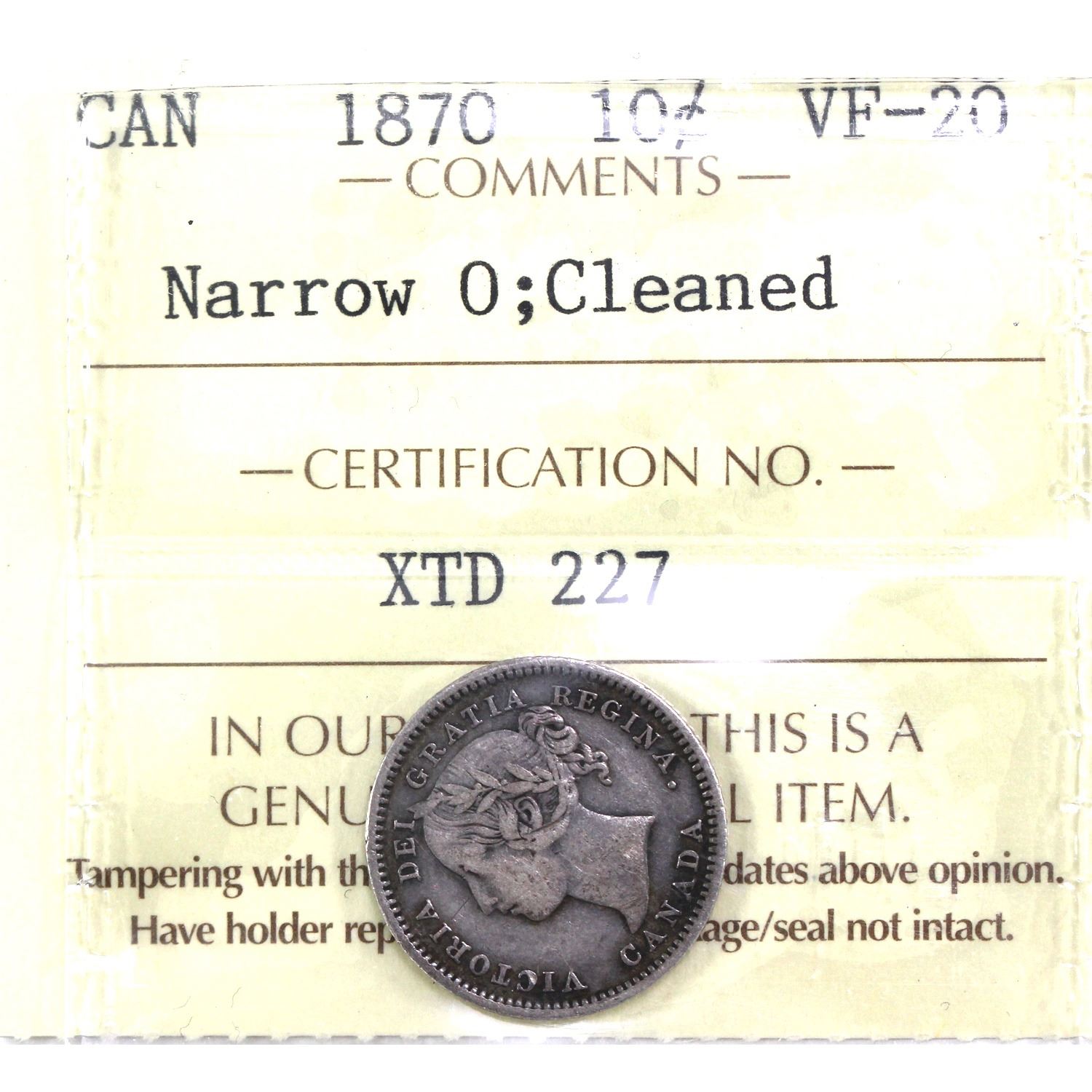 1870 Narrow 0, Canada 10-cent ICCS Certified VF-20, Cleaned