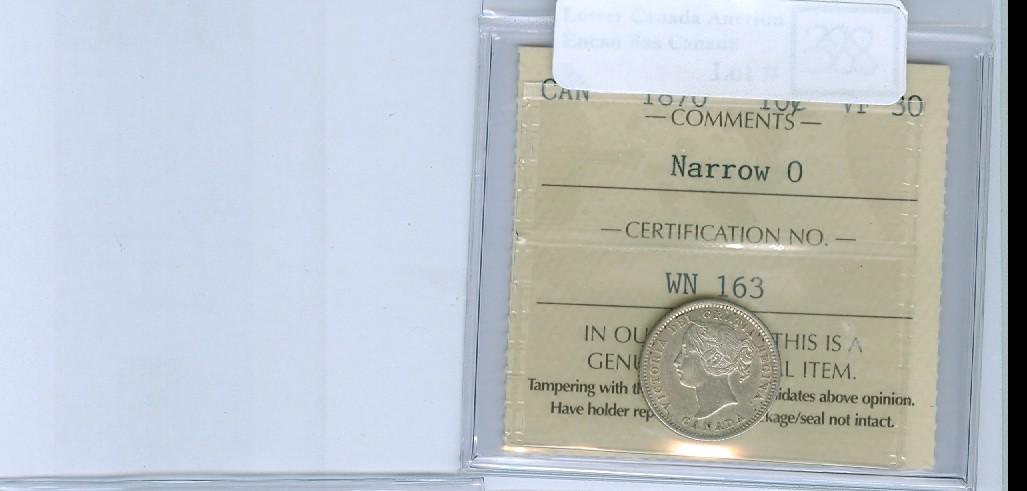 1870 Narrow O 10¢ ICCS VF30. Brilliant!