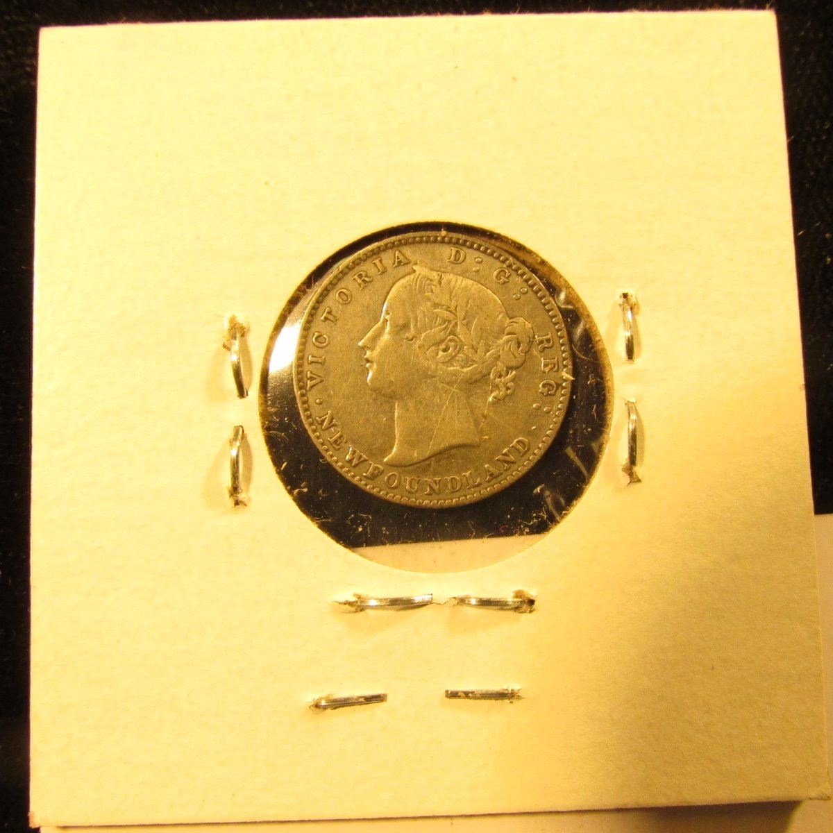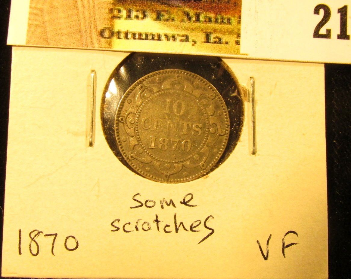 1870 Newfoundland Silver Dime, VF, some scratches.