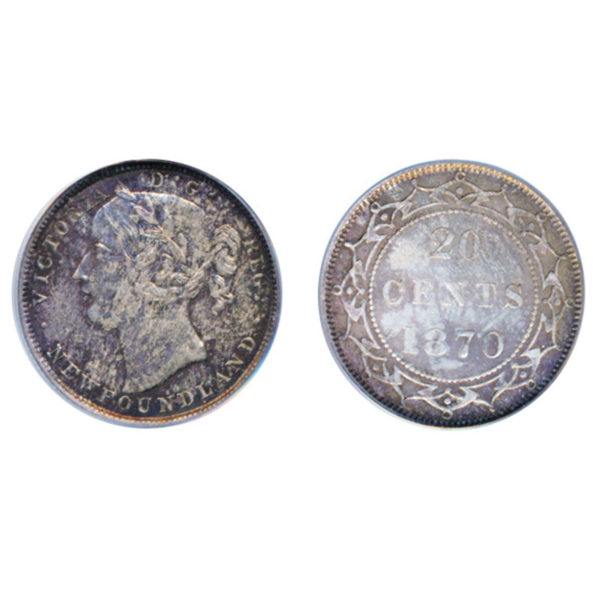 1870. PCGS graded Mint State-65. Medium heavy toning, with deep reflective fields. A Gem early strike. Ex. Belzberg collection, where it was certified as a Specimen by PCGS, but now determined to be a business strike. An unusual and Gem example.