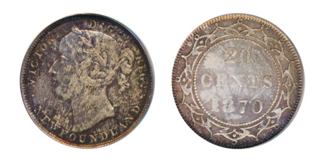1870. PCGS graded Mint State-65. Medium heavy toning, with deep reflective fields. A Gem early strike. Ex. Belzberg collection, where it was certified as a Specimen by PCGS, but now determined to be a business strike. An unusual and gem example.