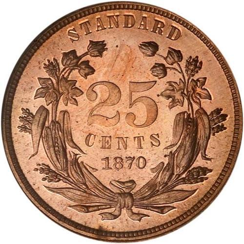 <b>1870 Pattern Quarter Dollar. Copper, plain edge. Judd-903. Pollock-1018. ANACS graded PF65 R.</b> Lovely deep fire red color on both sides, spot-free in its quality, and clearly one for the discerning collector of rare pattern coins. This is another of the STANDARD SILVER and STANDARD issues of coins for a newly proposed but never adopted subsidiary silver coin <b>(PCGS # 61147)</b>