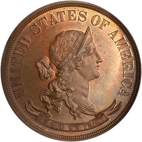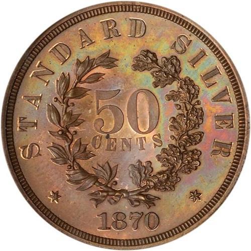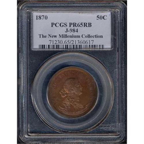 <b>1870 Pattern Half Dollar. Copper, plain edge. Judd-984. Pollock-1104. PCGS graded PF65 RB.</b> Ex. New Millenia Collection. And a coin that is perfect for the new 21st century and millennium in its gorgeous red copper to warm golden brown patina, spot-free and bold in every detail <b>(PCGS # 61230)</b>