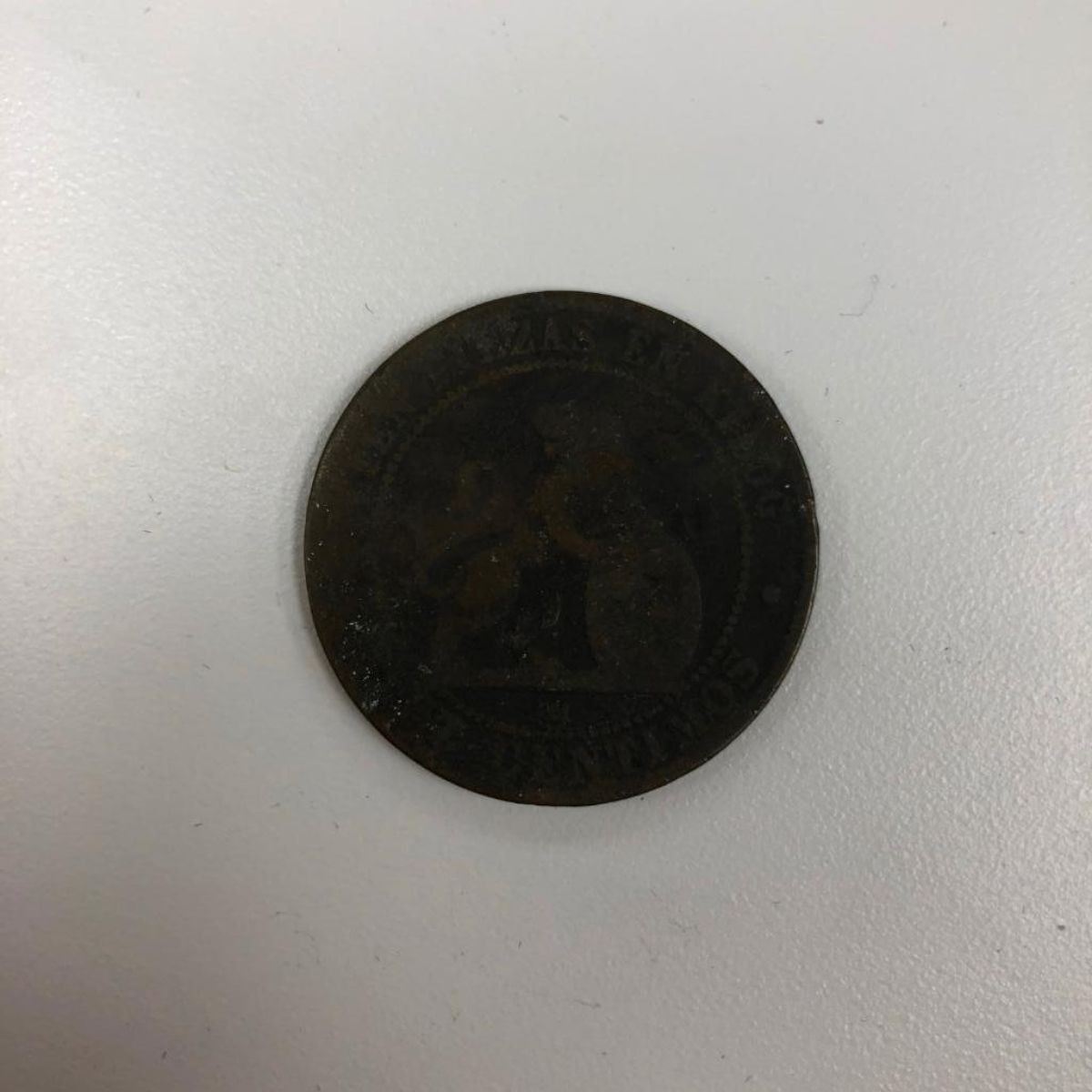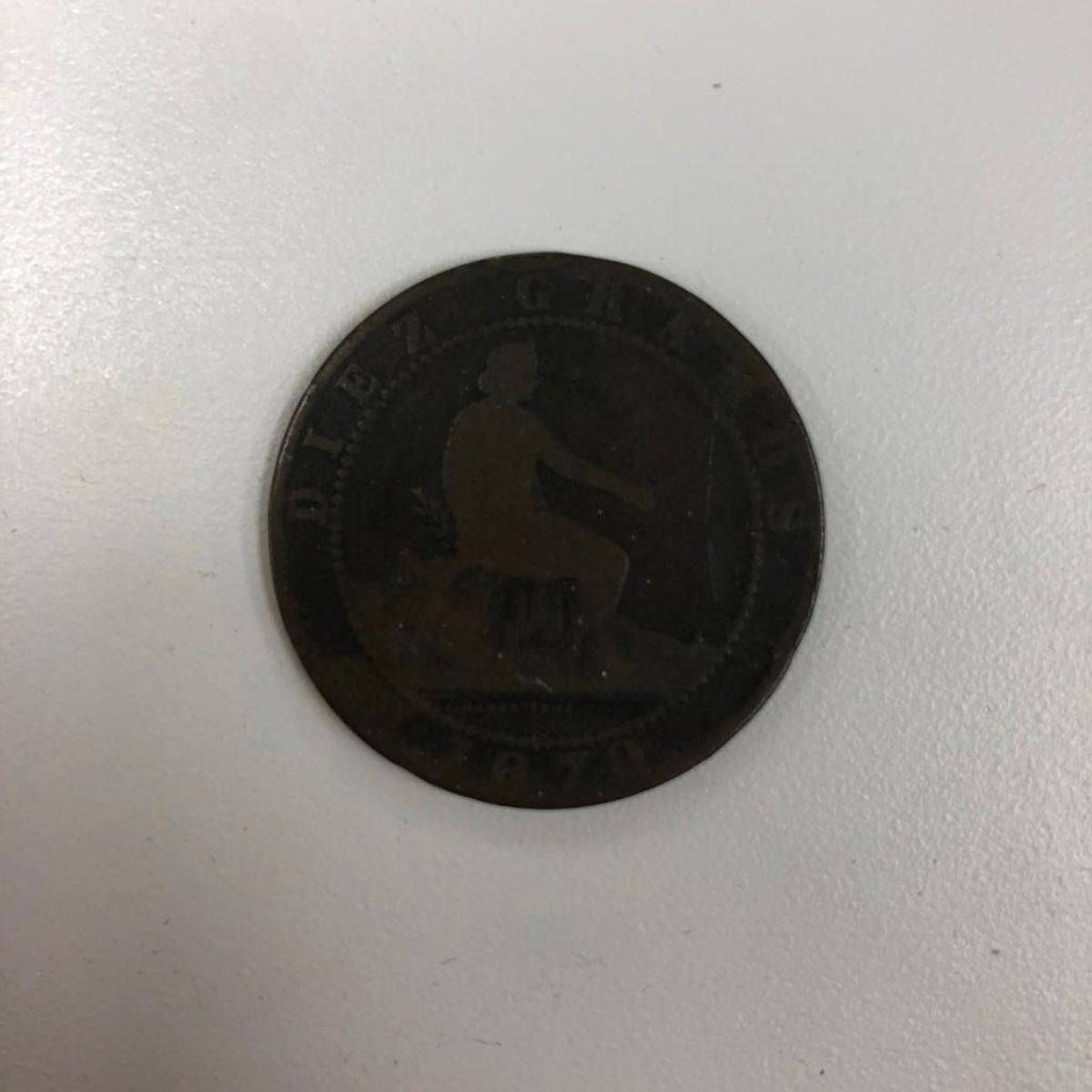 Obverse Seated Hispania facing right within beaded circle 'Diez gramos' is the weight (10 grams) Designer L.Planiol Lettering: DIEZ GRAMOS L·MARCHIONNI 1870 Translation: TEN GRAMS L·MARCHIONNI 1870 Engraver: Luis Marchionni Reverse Lion and shield. 'Cien piezas en kilog' is 100 of 10 grams coins weigh 1 kilogram. OM are Oeschger Mesdach Lettering: CIEN PIEZAS EN KILOG· OM DIEZ CENTIMOS Translation: ONE-HUNDRED UNITS PER KILOG·(KILOGRAM) OM TEN CENTS Engraver: Luis Marchionni Specifications Country: Spain Period: Provisional Government (1868-1871) Type: Standard circulation coin Year: 1870 Value: 10 Centimos (0.1 ESP) Composition: Bronze Weight: 10 g Diameter: 30 mm Thickness: 1.6 mm Shape: Round
