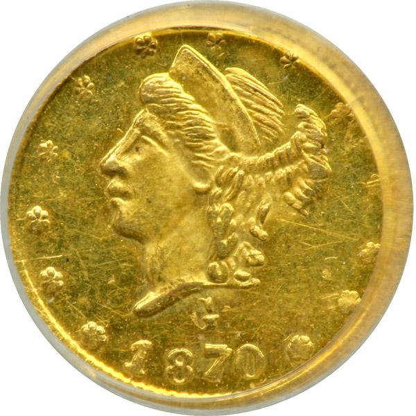 1870 Quarter Dollar Round. Breen and Gillio-835. Rarity 7. NGC graded MS-62. Mostly untoned with semi reflective surfaces. Pop 12; none finer except for 11 in Prooflike.