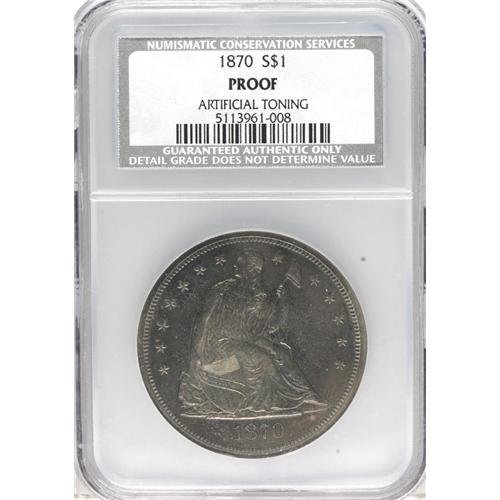 1870 S$1 --Artificial Toning--NCS. Proof. One of 1,000
