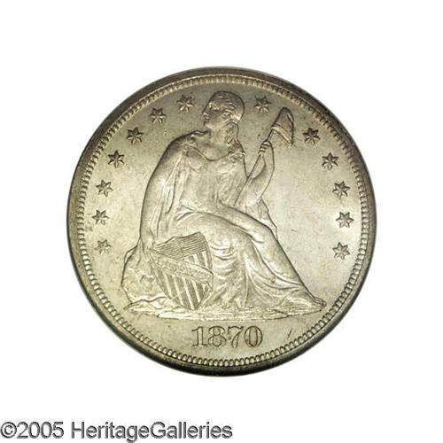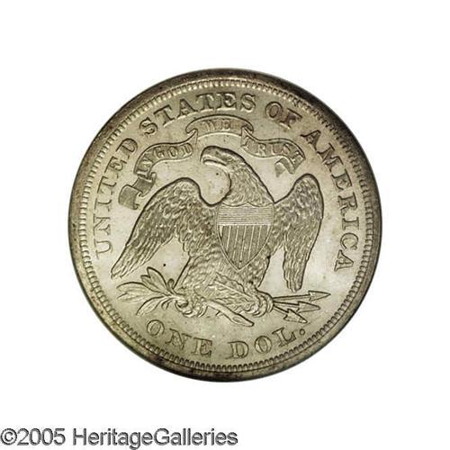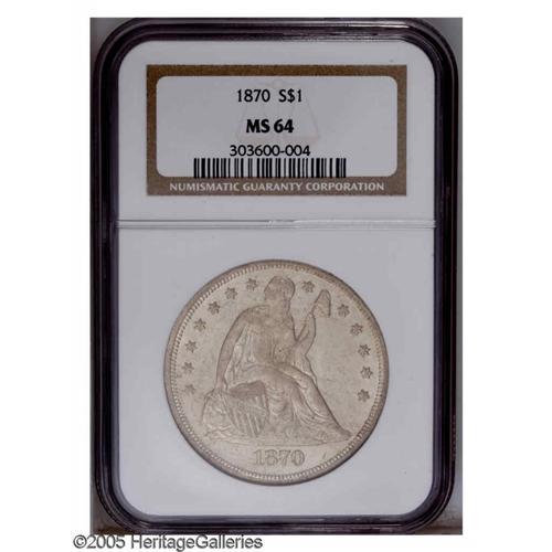 1870 S$1 MS64 NGC. Frosty and quite bold, with a semi- 1870[S$1] MS64 NGC.