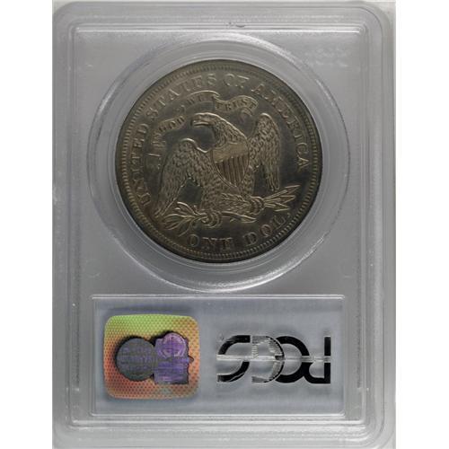 <B>1870<img border='0' src='http://www.heritagecoins.com/images/star.gif' width=10 height=10>$1> PR62 PCGS.</B></I> A razor-sharp example that has vivid golden-brown patina. The fields show some handling marks, especially in the right obverse field, that help define the grade.