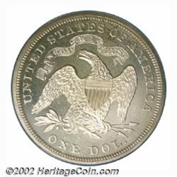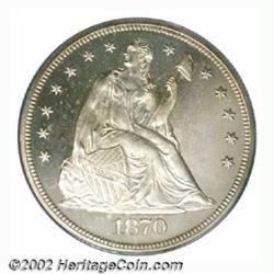 1870 S$1 PR64 PCGS. Brilliant and deeply mirrored with light frosting on the devices. Very light hairlines can be seen when the coin is closely examined, but anyone would perceive this as an arm's-length Gem. Important notice: We expect to be auctioning lots at the rate of 200-250 per hour. Sometimes eBay Premier live bid software cannot keep up with that pace, so we strongly recommend that you place a realistic proxy bid now as insurance to avoid disappointment. Also please note that all Heritage/CAA lots purchased through eBay Premier carry a 20% Buyer's Premium. Please make sure you read the Terms and Conditions.