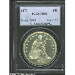 1870 S$1 PR64 PCGS. Brilliant and deeply mirrored with light frosting on the devices. Very light hai