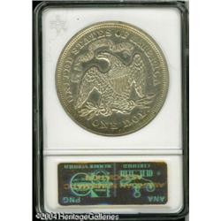 1870 S$1 XF45 ANACS. Lustrous and bold for the ass <B>1870 S$1 XF45 ANACS.</B></I> Lustrous and bold for the assigned grade, warm apricot patina embraces the borders. A planchet flaw (as struck) is on the obverse rim near 3 o'clock. TRUST and STATES are lightly die doubled. Certified in an ANA cache holder. <BR><BR><B>Important notice:</B> Heritage usually auctions material at the rate of 200-250 lots per hour. On some occasions eBay Live bid software or the Internet may not be able to keep up with the pace of the auction. We recommend placing a realistic absentee bid now as insurance to avoid disappointment. Occasionally the auctioneer may eliminate or reject an eBay Live bid, and the auctioneer may also reopen a lot after the close of the eBay live bidding (usually because we missed an audience bid), and may reject your bid even if it shows you as the winning bidder. By bidding via eBay Live, you agree that Heritage may award the lot to another bidder at its sole discretion under the circumstances described above or any other reasonable circumstances. Since eBay bids are not shown to us until we open the lot on the floor, we treat those bids just like floor bids. In most cases the floor responds before the eBay bid is presented to us, due to Internet lag time, so for consistency we have made it a policy that floor bids are always considered first over tie eBay live bids. Also please note that all Heritage lots purchased through eBay Live carry a 20% Buyer's Premium. Please make sure you read the Terms and Conditions before you bid. This lot is being auctioned in conjunction with a live floor auction by Heritage Galleries & Auctioneers. All final auction and invoice information will be supplied by Heritage Galleries & Auctioneers, and all other information should be considered preliminary. Lot:6389
