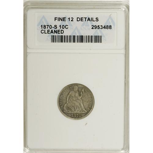 1870-S 10C --Cleaned--ANACS. Fine 12 Details. NGC C