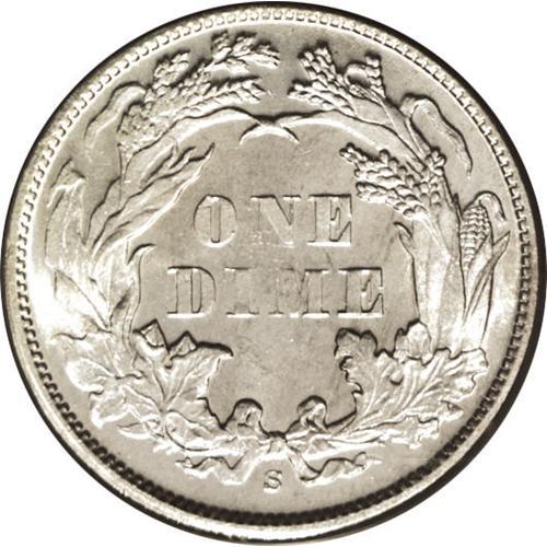 <B>1870-S<10C> MS64 PCGS.</B></I> A near-Gem, high-end example with full mint bloom, snow-white finish overall, and claims to an even higher grade. This is a very scarce issue, one of just 50,000 pieces struck. Many of those are now well worn, as most coins produced at Western mints during this time period saw heavy circulation. Population: 5 in 64, 10 finer (7/06).