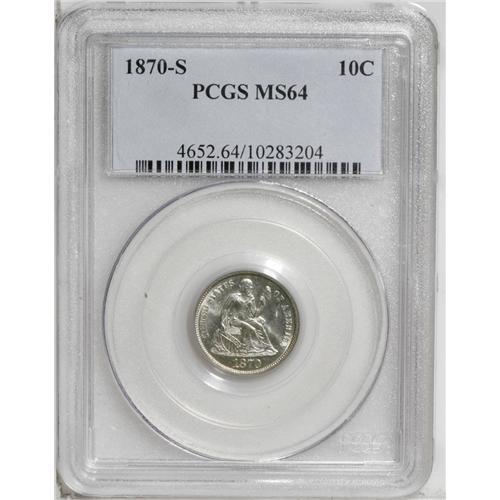 1870-S 10C MS64 PCGS. A near-Gem, high-end example wit