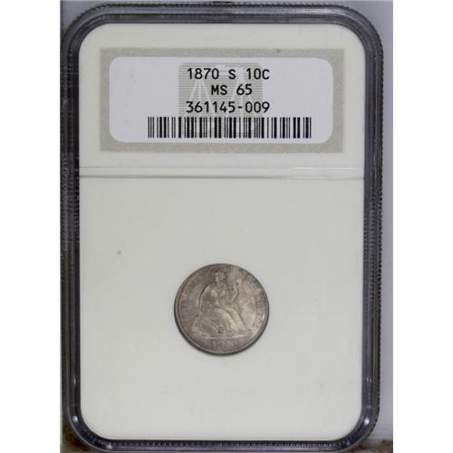 1870-S 10C MS65 NGC. A scarce issue with only 50,000 p 1870-S[10C] MS65 NGC.