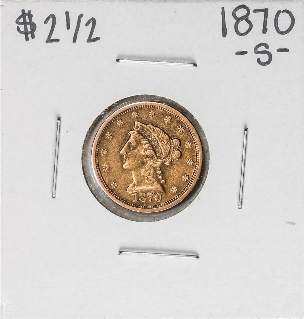 One 1870-S $2 1/2 Liberty Head Quarter Eagle Gold Coin.