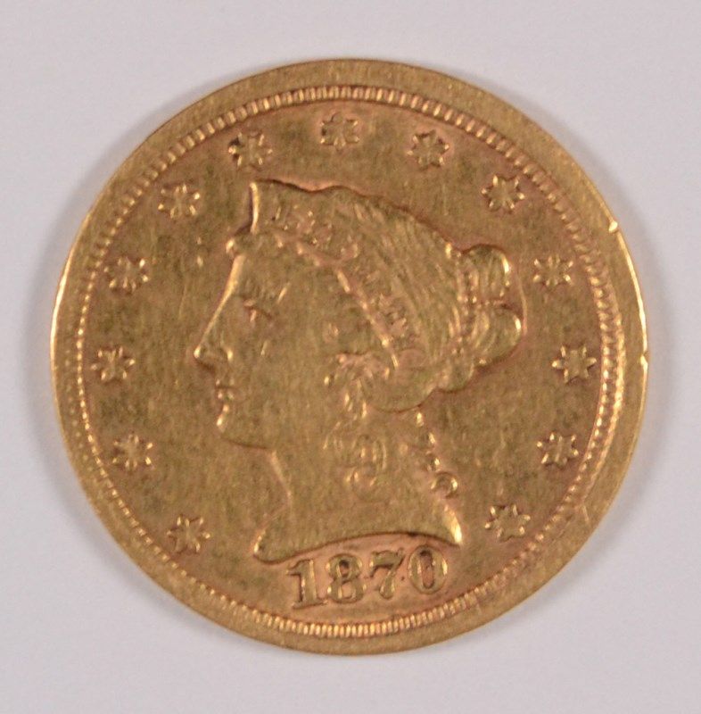 1870-S $2.50 GOLD LIBERTY, AU CLEANED, SCARCE DATE