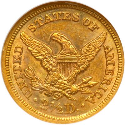 1870-S $2.50 Liberty. NGC graded AU-58. Nice golden toning. Only 16,000 minted. Frosty golden surfaces display much residual luster with natural patina. Sharp and appealing for this scarce, low-mintage San Francisco Mint issue. Pop 24; 12 finer. (PCGS # 7812).