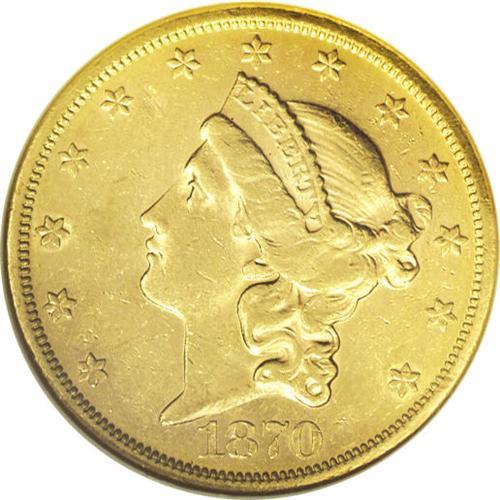 1870-S $20 AU58 NGC. For several denominations, princi