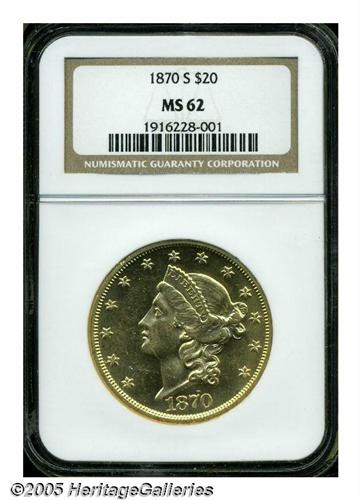 1870-S $20 MS62 NGC. Writing in 2002, Doug Winter