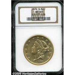 <B>1870-S $20 XF45 NGC.</B></I> Attractive for the grade, since no obtrusive marks are located and there is no shortage of bright remaining luster.