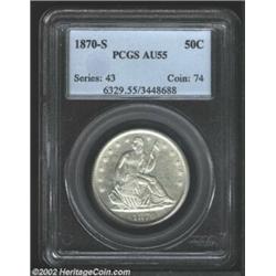1870-S 50C AU55 PCGS. A silver-gray specimen that has abundant bright luster across the margins and.