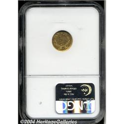 <B>1870-S<G$1> MS61 NGC.</B></I> With only 3,000 pieces produced, it is easy to see why the 1870-S Gold Dollar is such a popular issue with collectors. It is also the final branch mint issue of the type, which gives it even more collector appeal. Offered here is a solid Mint State representative draped in reddish patina. Population: 9 in 61, 17 finer (5/04). <BR><BR><B>Important notice:</B> Heritage usually auctions material at the rate of 200-250 lots per hour. On some occasions eBay Live bid software or the Internet may not be able to keep up with the pace of the auction. We recommend placing a realistic absentee bid now as insurance to avoid disappointment. Occasionally the auctioneer may eliminate or reject an eBay Live bid, and the auctioneer may also reopen a lot after the close of the eBay live bidding (usually because we missed an audience bid), and may reject your bid even if it shows you as the winning bidder. By bidding via eBay Live, you agree that Heritage may award the lot to another bidder at its sole discretion under the circumstances described above or any other reasonable circumstances. Since eBay bids are not shown to us until we open the lot on the floor, we treat those bids just like floor bids. In most cases the floor responds before the eBay bid is presented to us, due to Internet lag time, so for consistency we have made it a policy that floor bids are always considered first over tie eBay live bids. Also please note that all Heritage lots purchased through eBay Live carry a 20% Buyer's Premium. Please make sure you read the Terms and Conditions before you bid.