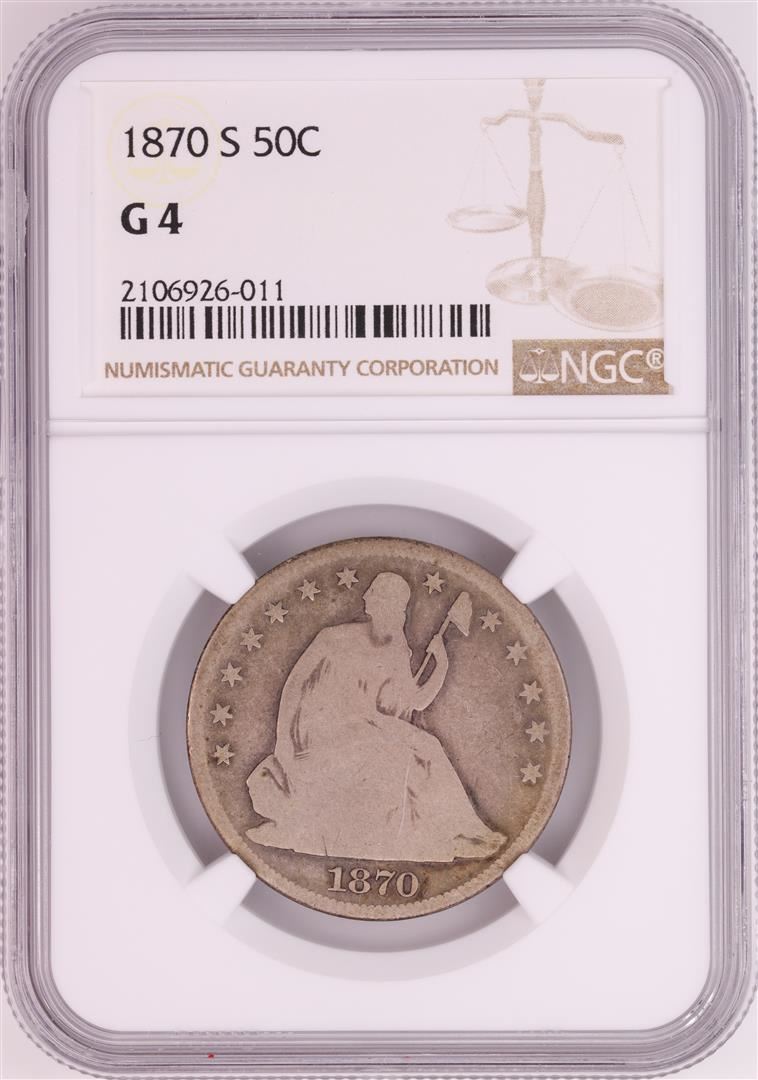 One 1870-S Seated Liberty Half Dollar Coin NGC G4. NGC Certified.