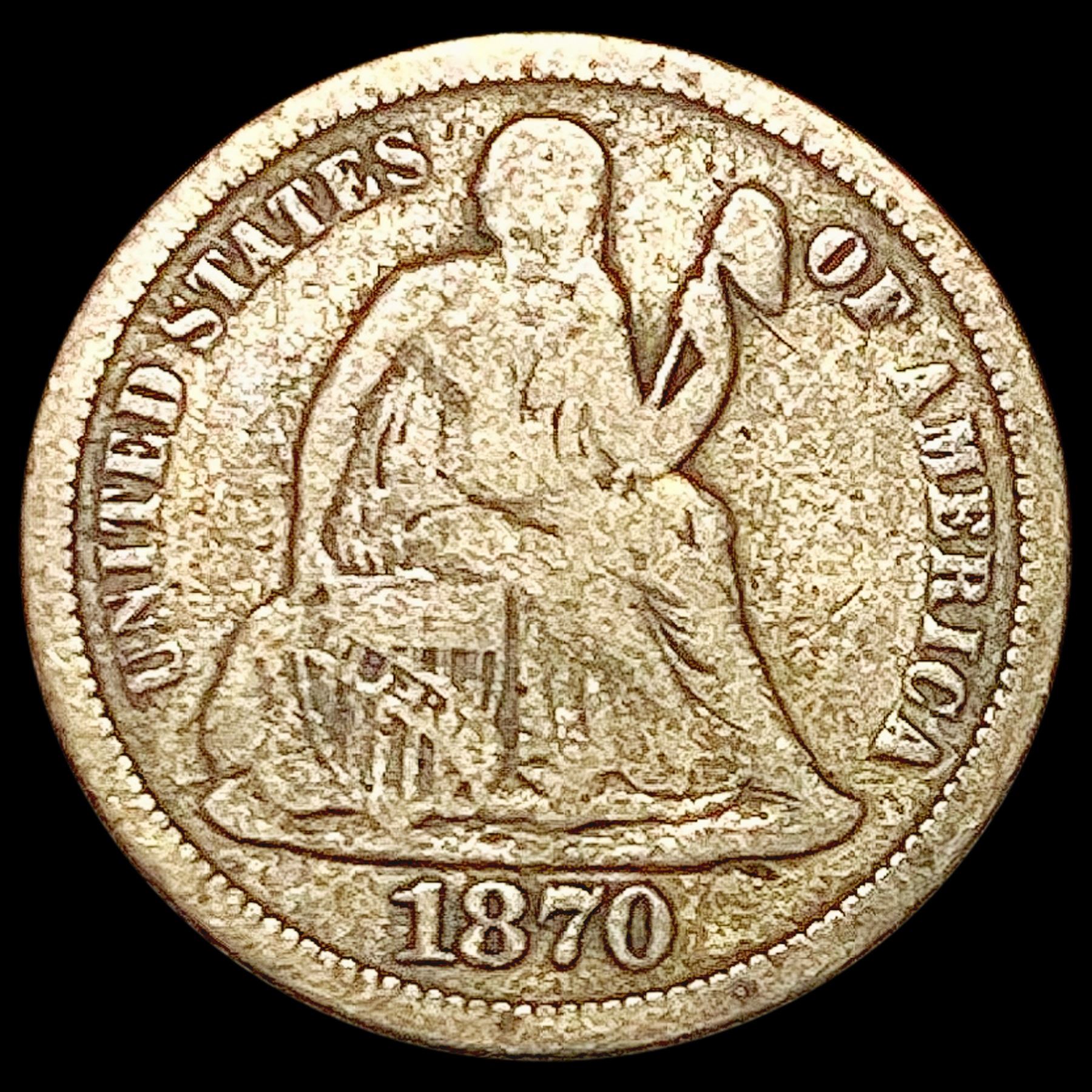 1870 Seated Liberty Dime LIGHTLY CIRCULATED