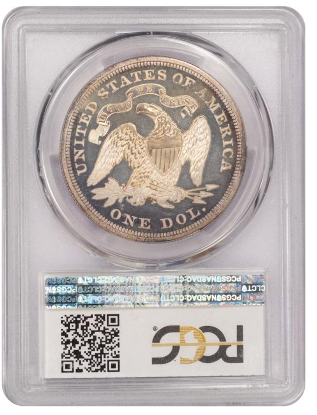 One 1870 Seated Liberty Dollar with Motto PCGS PR66CAM.