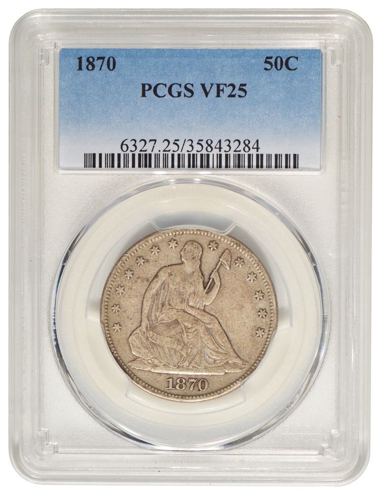 One 1870 Seated Liberty Half Dollar Coin PCGS VF25.