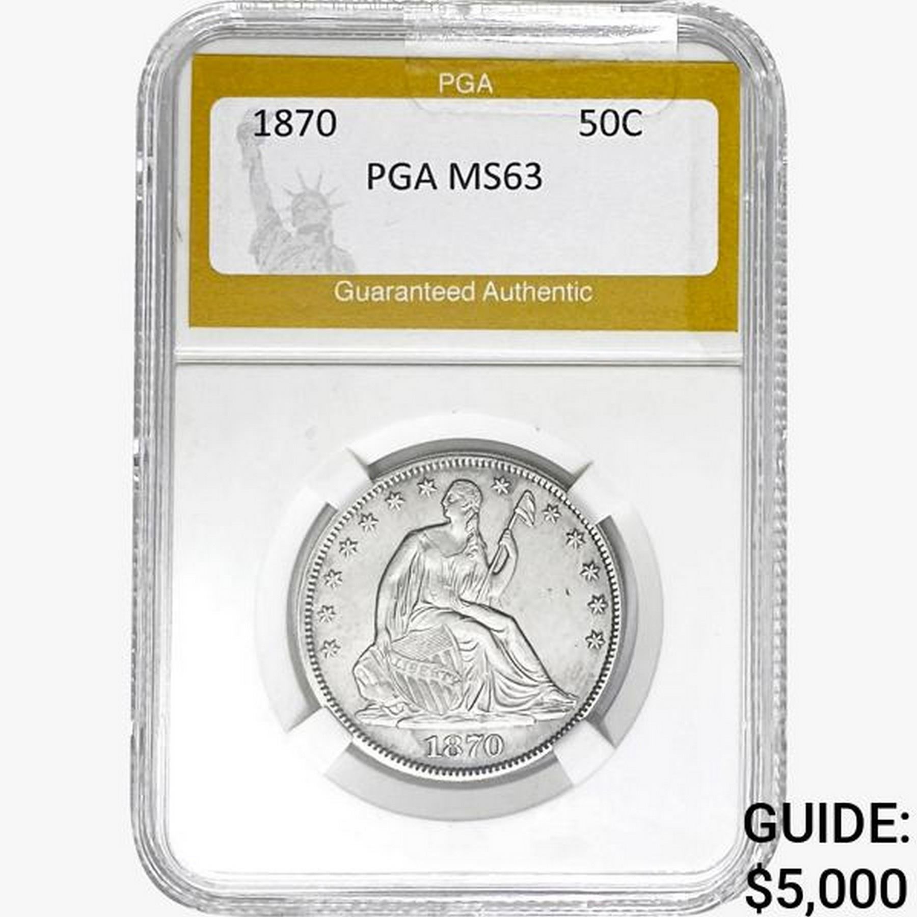 1870 Seated Liberty Half Dollar PGA MS63
