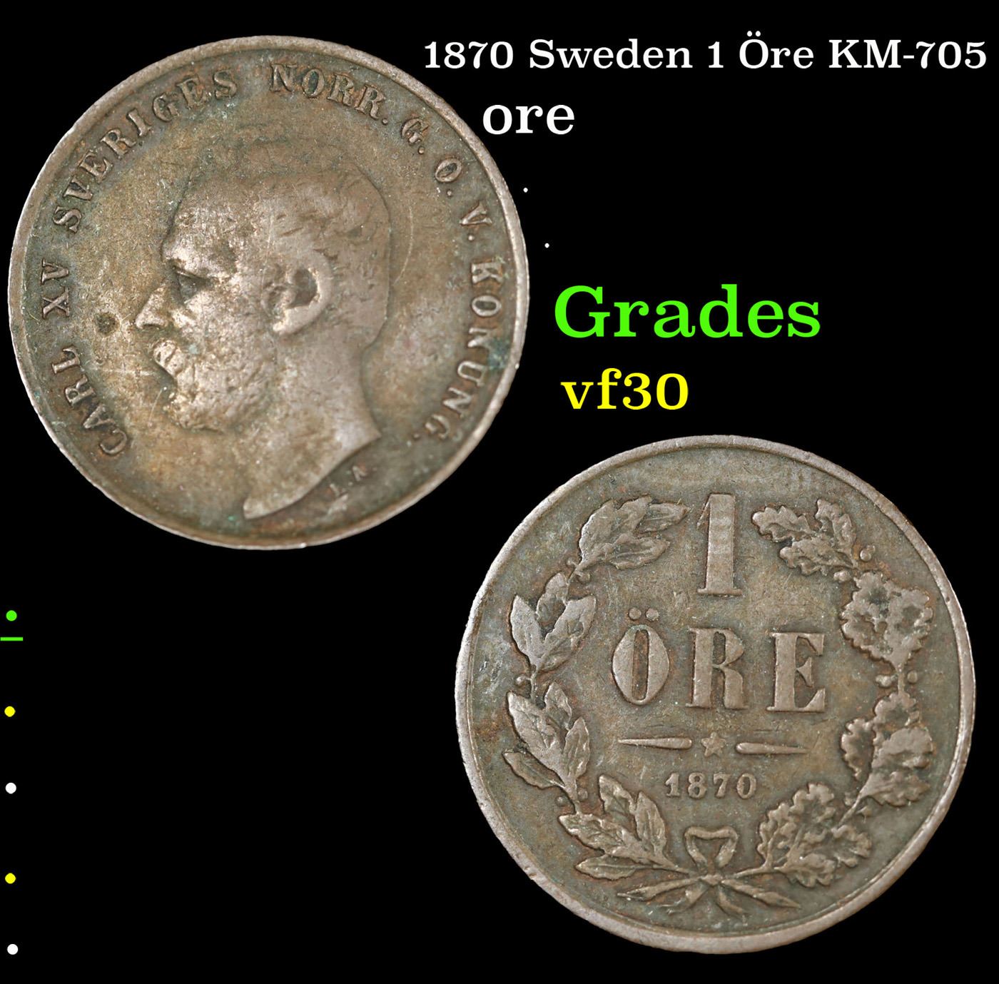 1870 Sweden 1 Öre KM-705 Grades vf++.