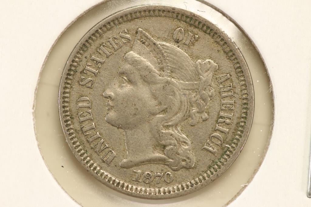 1870 THREE CENT PIECE (NICKEL) VERY FINE