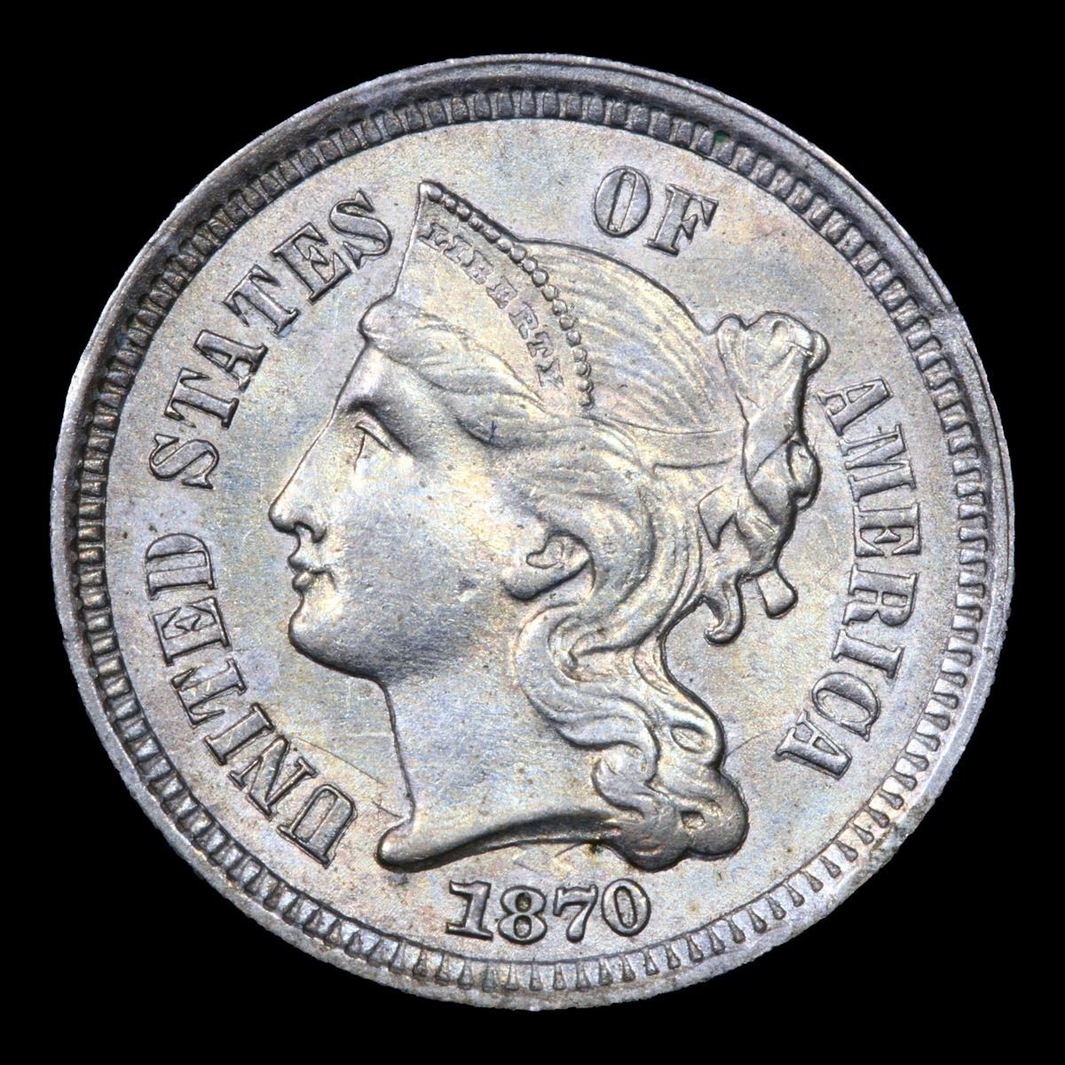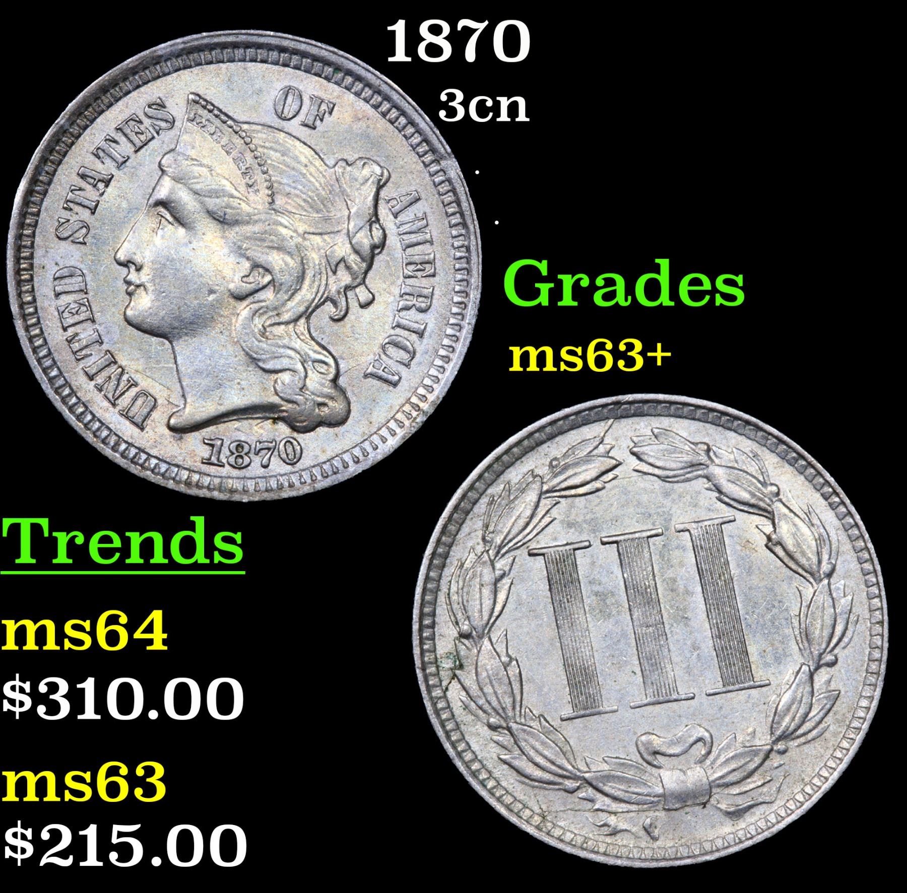 1870 . . Three Cent Copper Nickel 3cn Grades Select+ Unc.