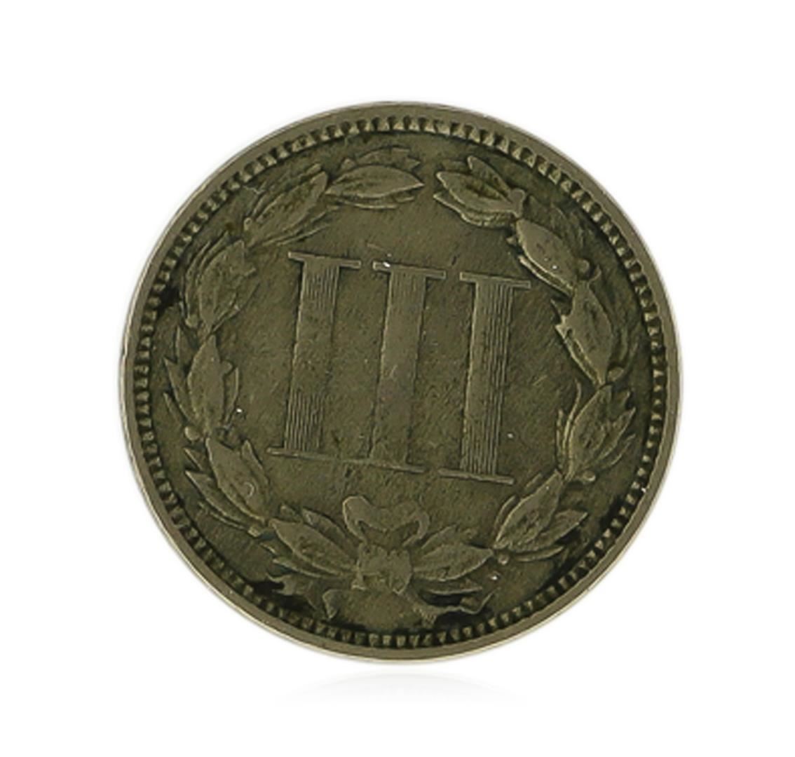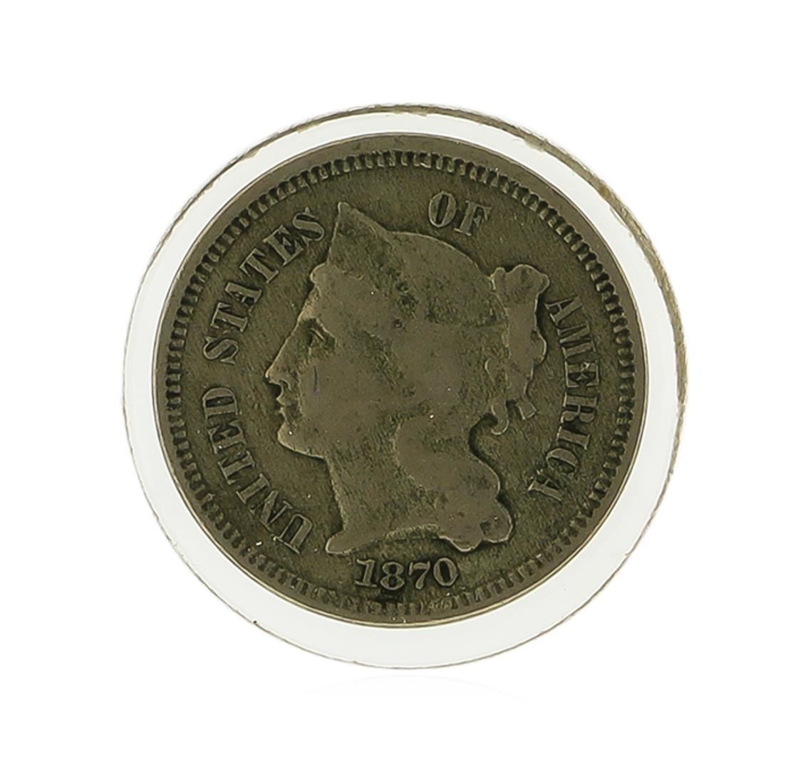 One 1870 Three Cent Nickel Piece Coin.