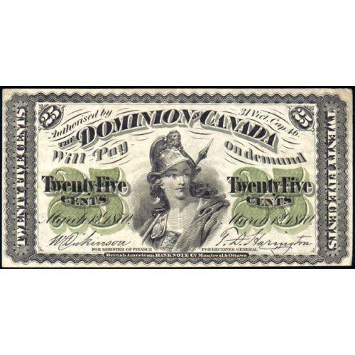 1870 Twenty-Five Cents, Plain, DC-1c, VF-EF. A bright, crisp note with three folds and some minor soiling along the folds on the back