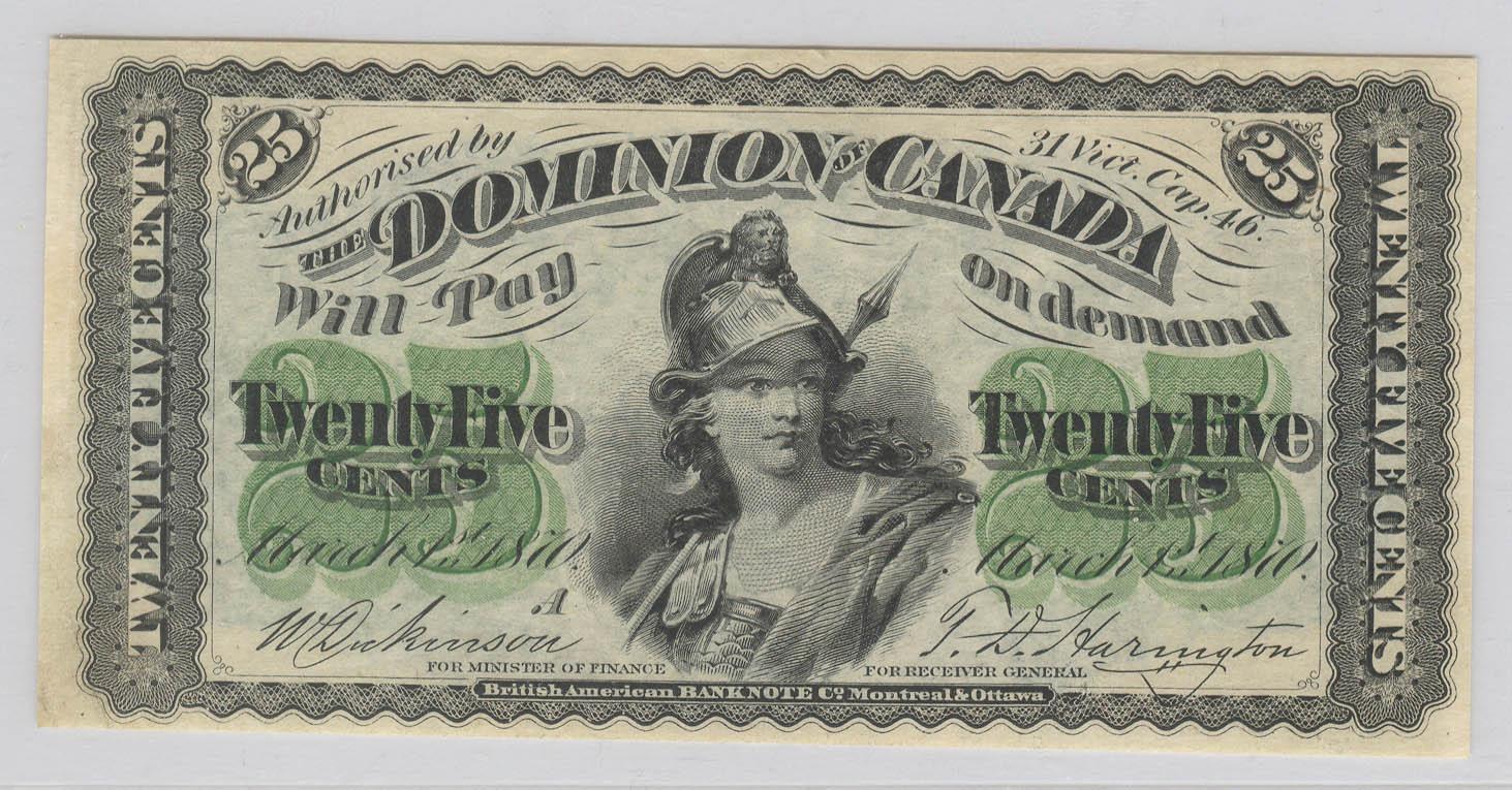 1870 Twenty Five Cents Series A, DC-1a, BCS EF-40, Dickinson Harington, 1 crease on the right side.