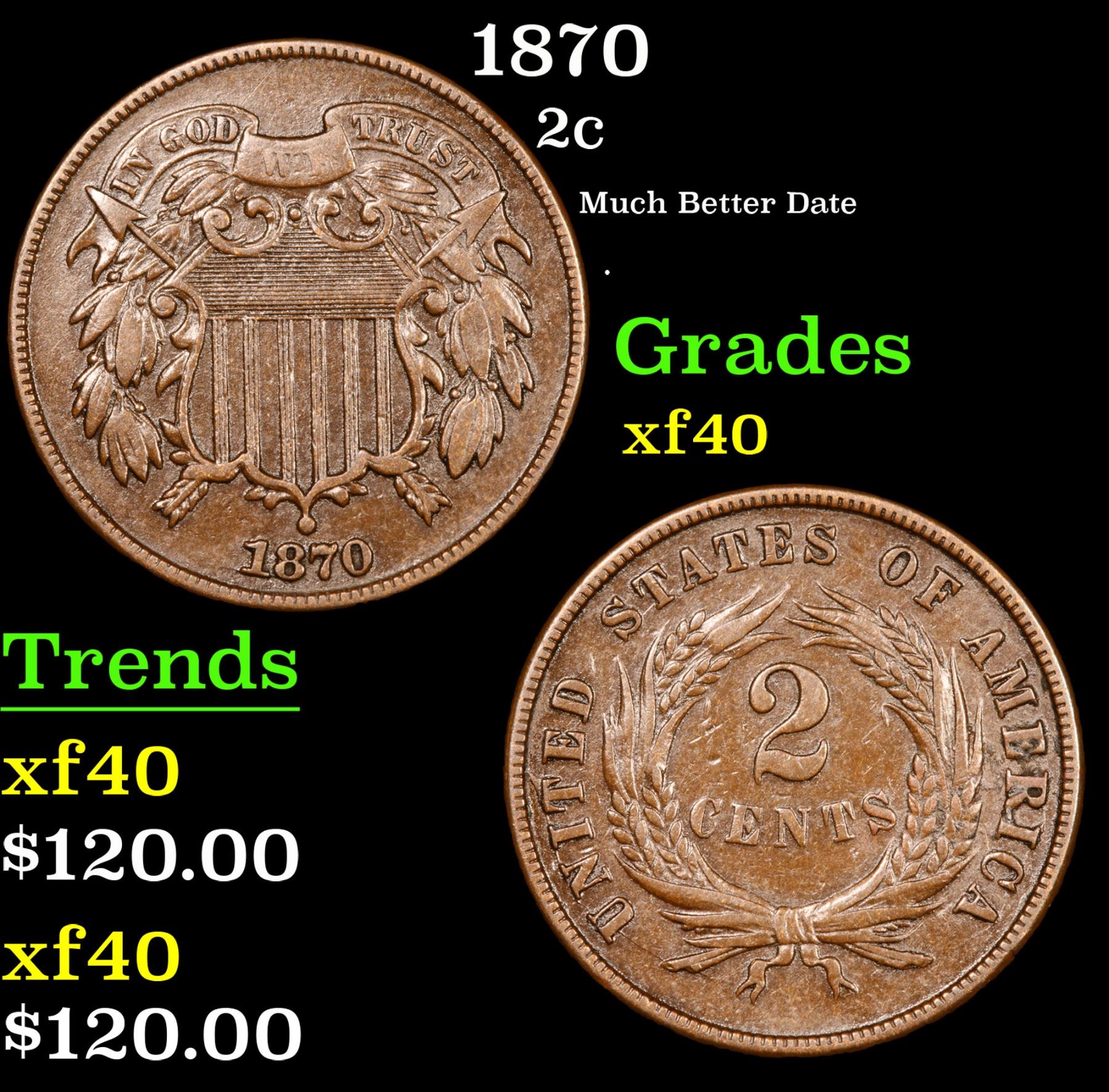 1870 Much Better Date . Two Cent Piece 2c Grades xf. A Corey's Pick
