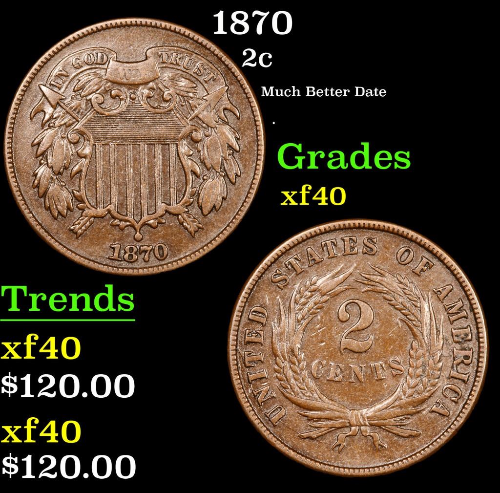 1870 Much Better Date . Two Cent Piece 2c Grades xf.