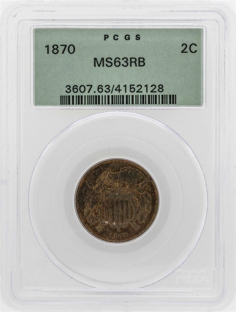 One 1870 Two Cent Piece Coin PCGS MS63RB. PCGS Graded.