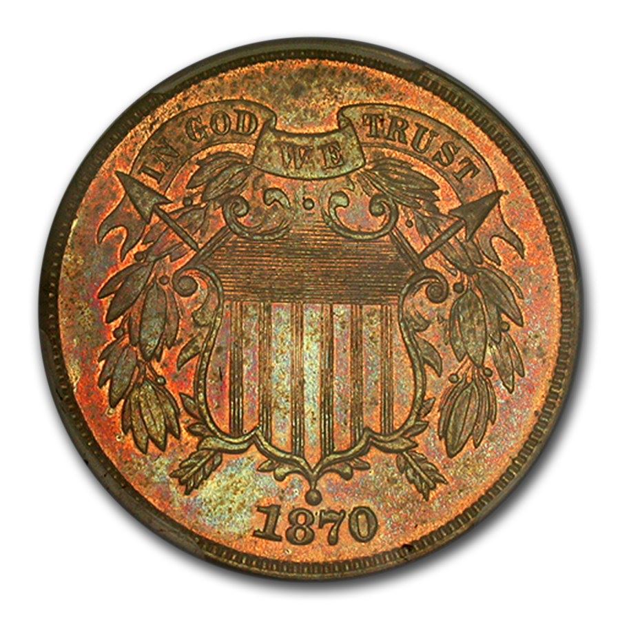 1870 Two Cent Piece PR-65 PCGS (Red/Brown)
